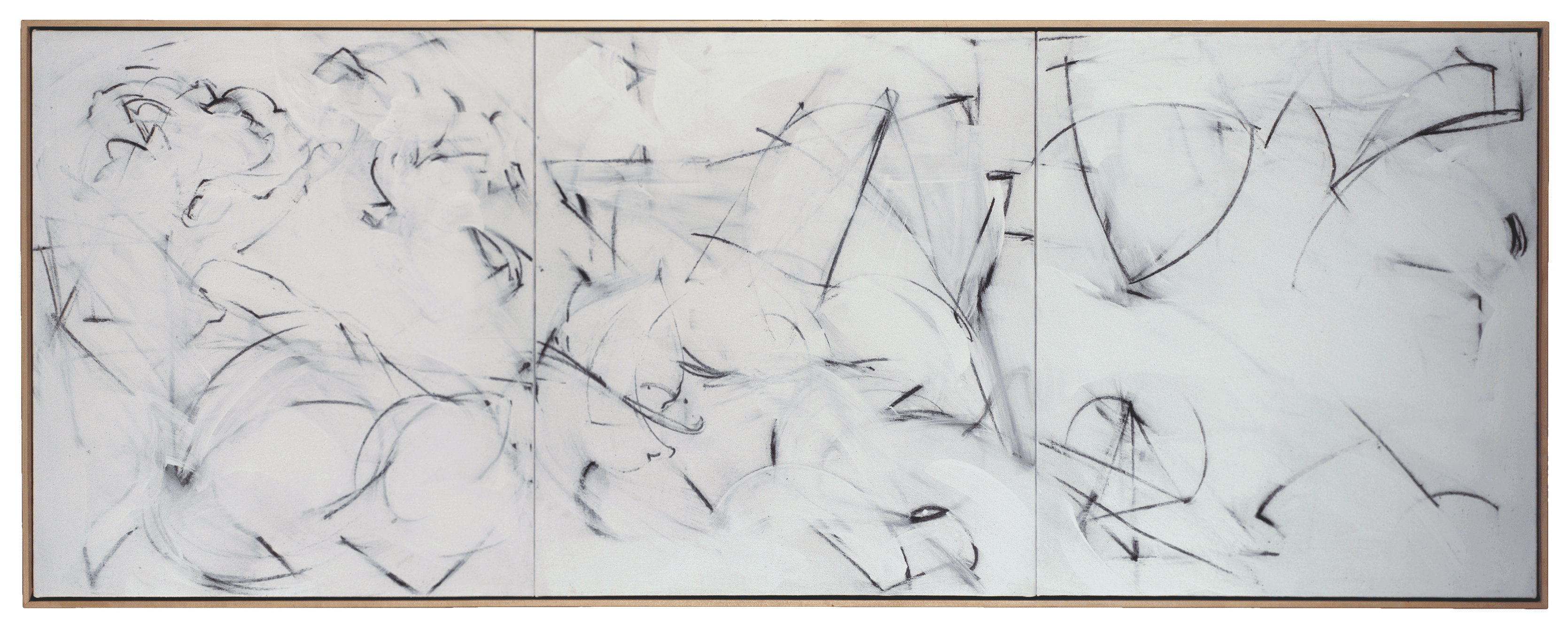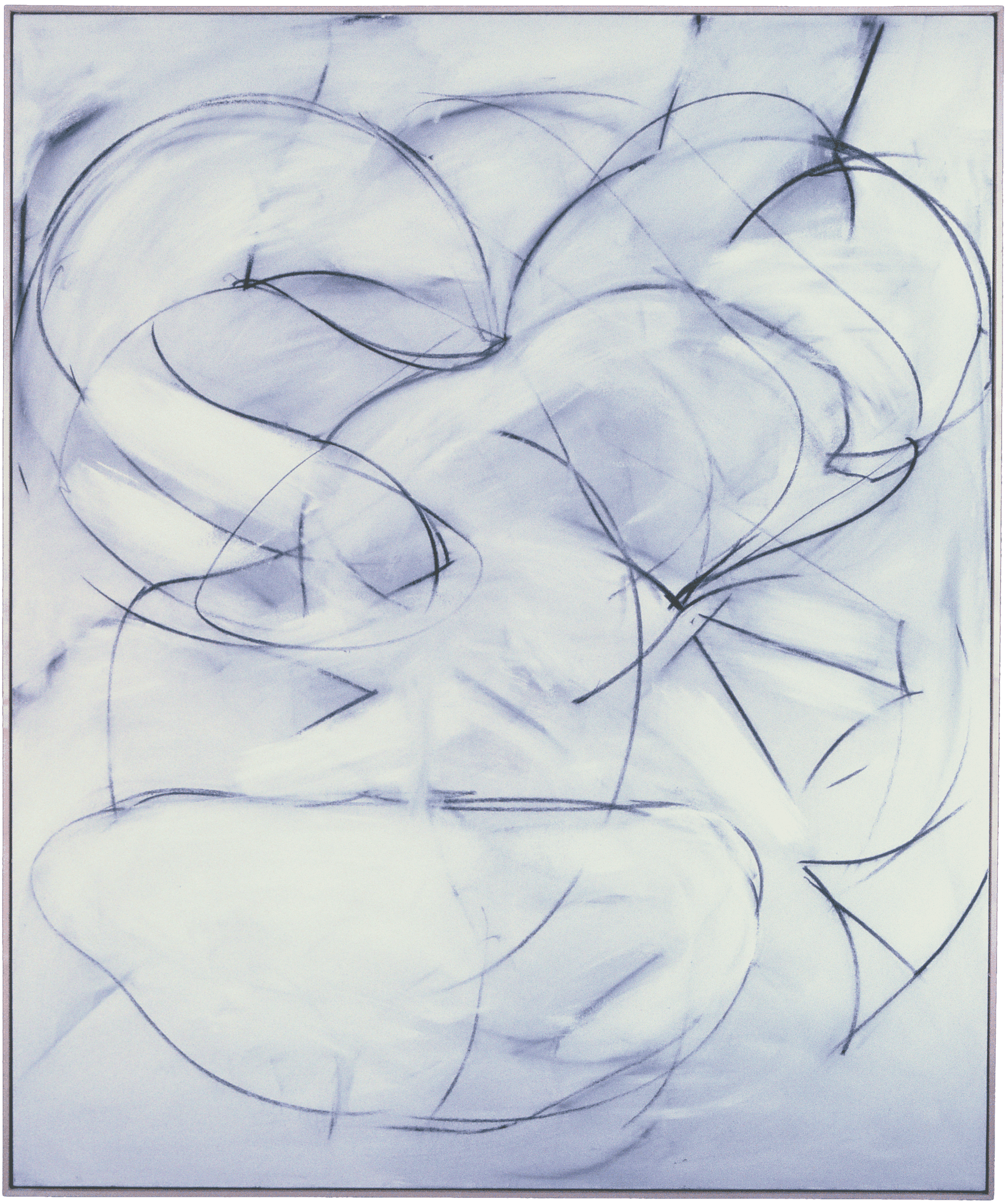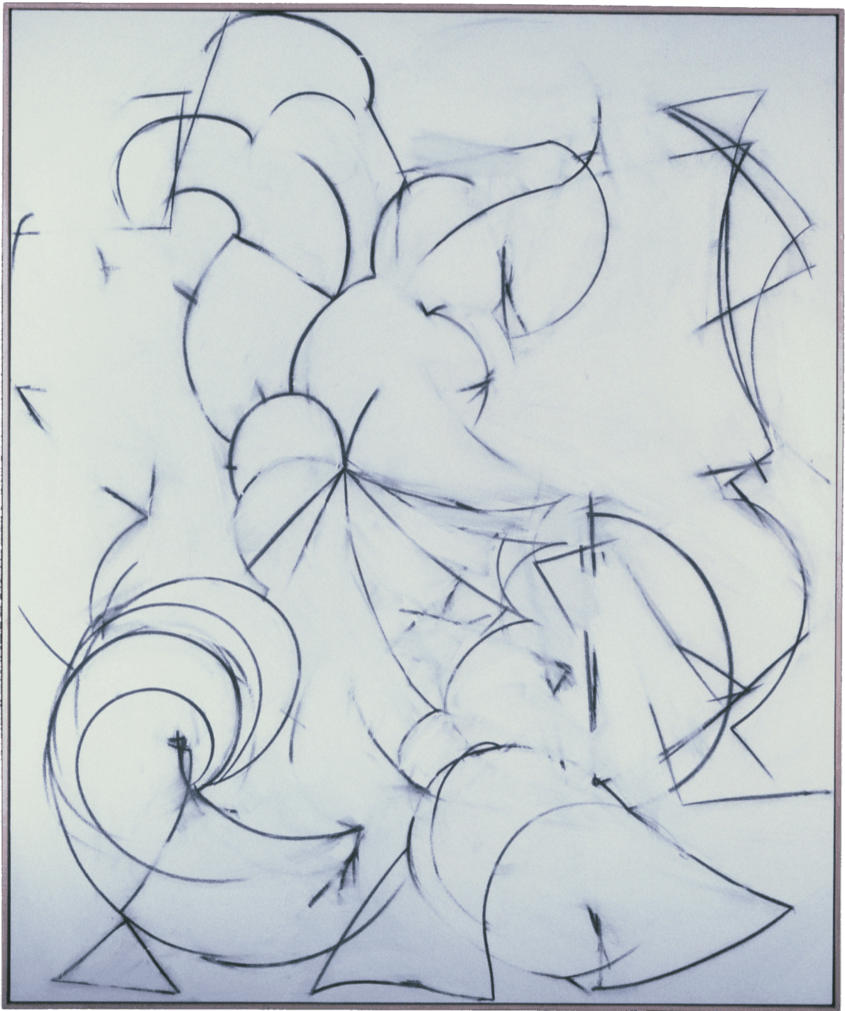 In an enclave a few minutes’ walk from the house sits a rambling shed — resolutely barn red to justify its historical title: The Barn — where Peter cleared some space and produced his (1980s-90s) charcoal-and-acrylic paintings.