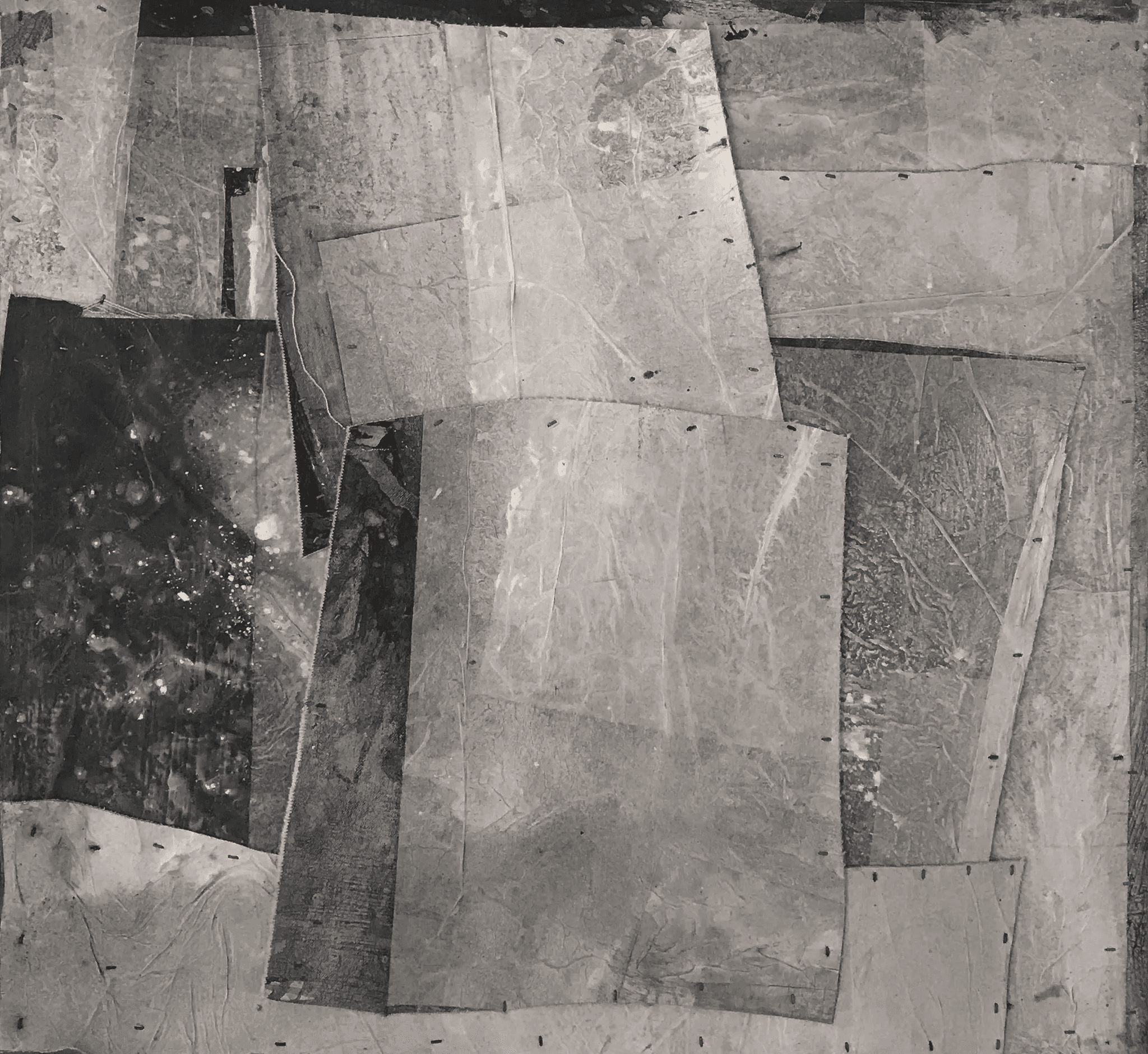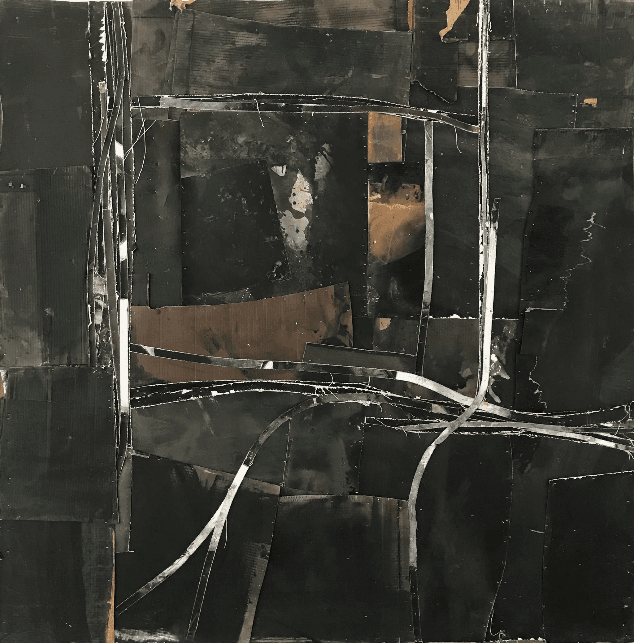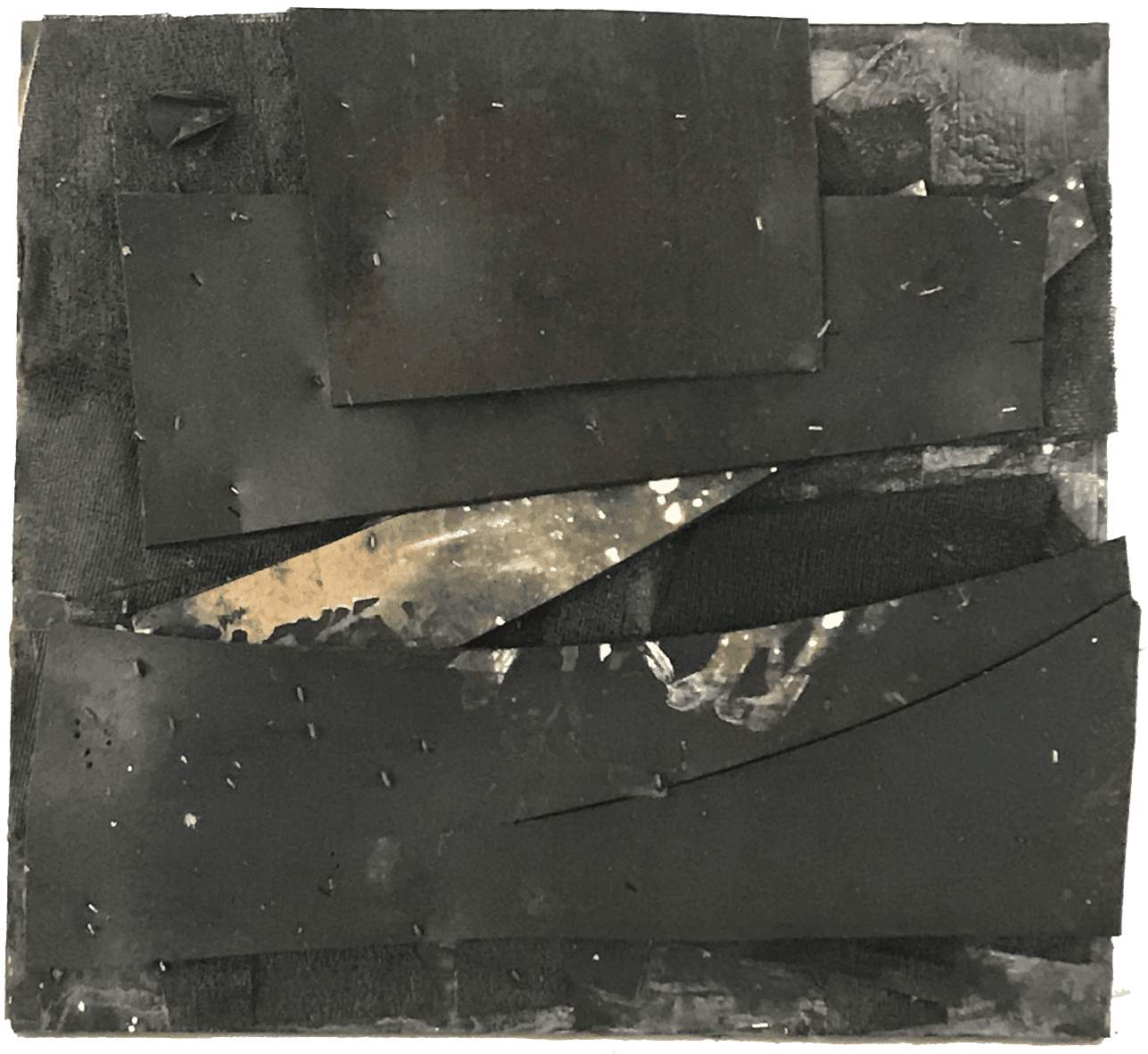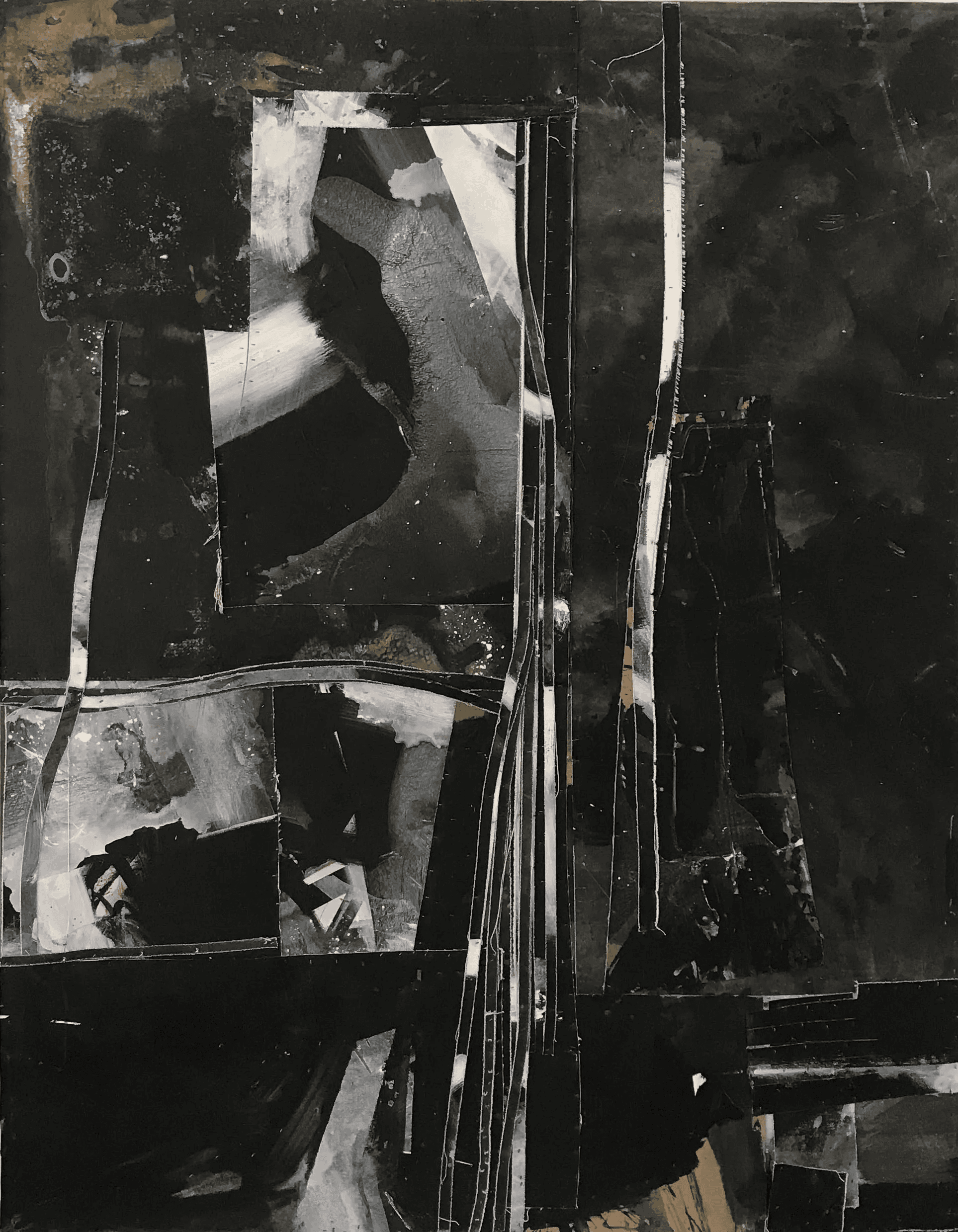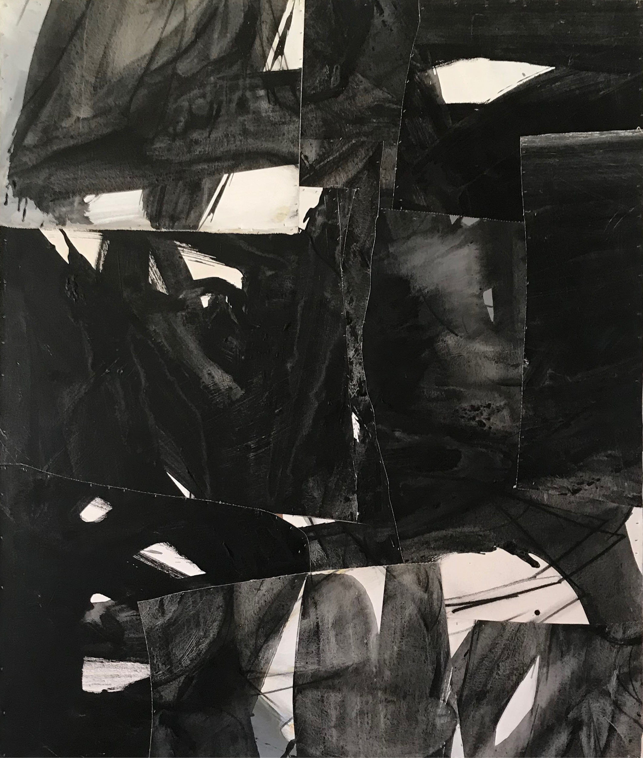 In closeup, the collage work often intrigues with artisanal emphasis on tactile detail – but, seen from a distance, explores perspective and chiaroscuro, among other painter’s classic inquiries.